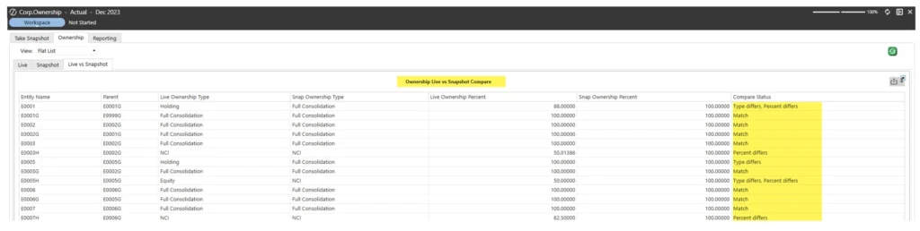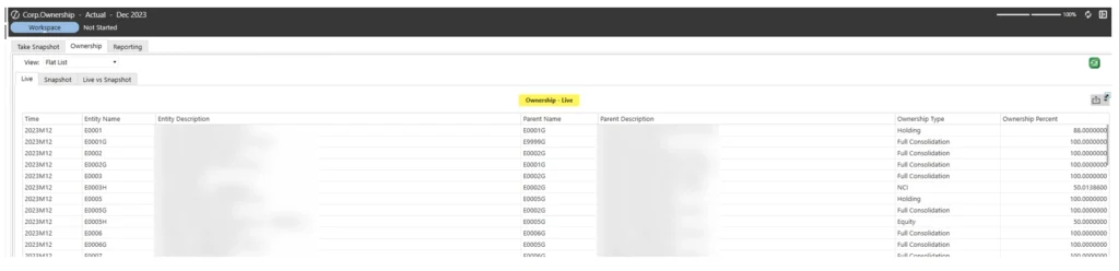 - Control consolidation percentages through Ownership properties