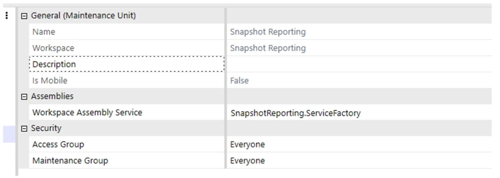 Within the workspace, I defined the service factory and pointed the Workspace Assembly Service to the Snapshot Reporting Service Factory.