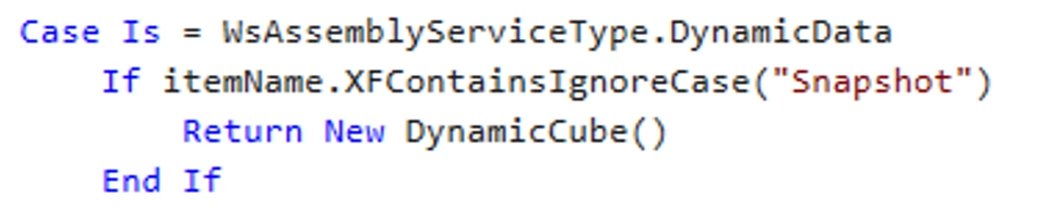 Inside the service factory, I used the DynamicData workspace assembly service type.