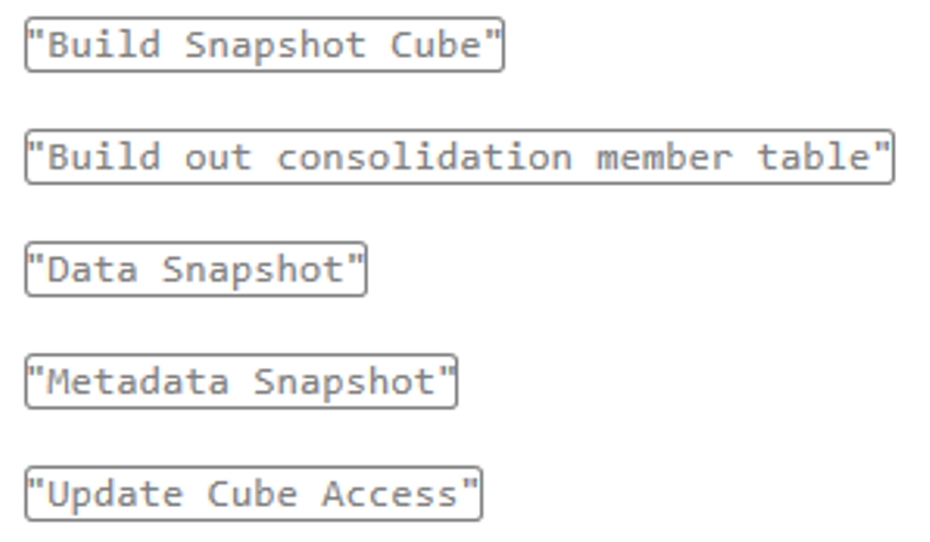 When the “Take Snapshot” button is clicked within the workflow, the system initiates the dynamic cube creation process.