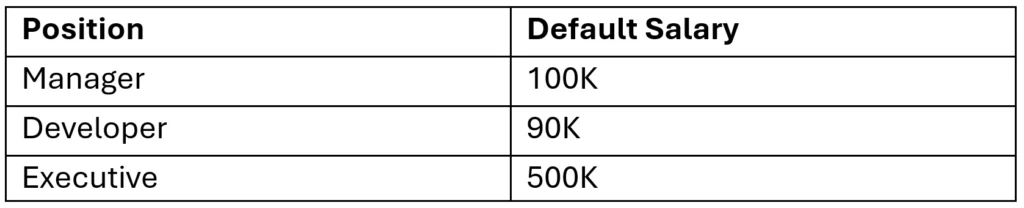 - Salary is stored alongside position data, even though compensation may vary by employee.