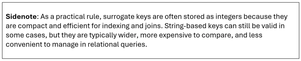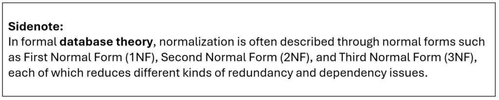 - Intentionally Duplicate Data: In reporting tables, it can be useful to copy reference attributes such as position name, department, or category so that the report does not have to reconstruct them through repeated joins.