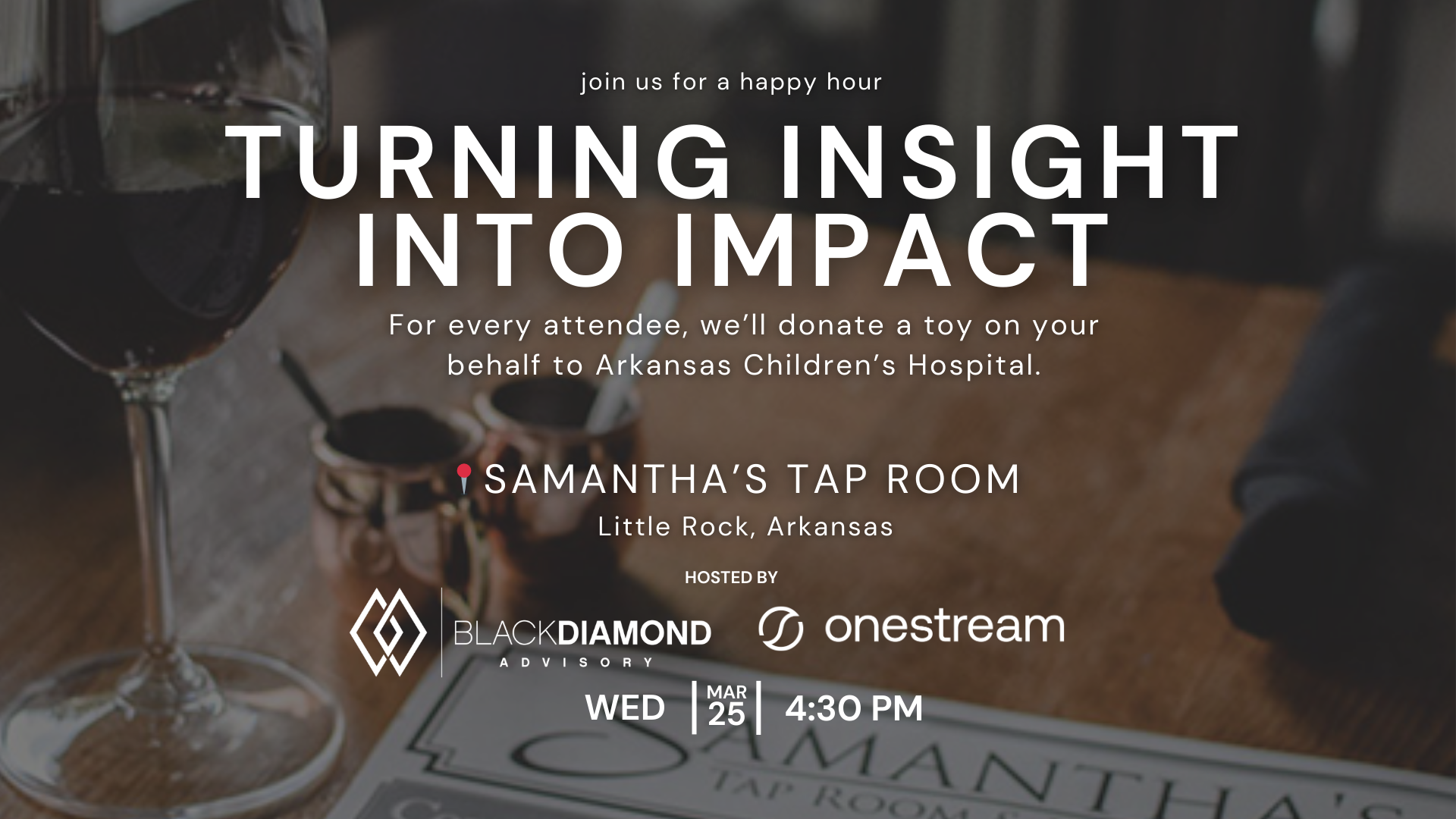 In the spirit of community, Black Diamond Advisory will donate one toy to Arkansas Children’s Hospital for every attendee.